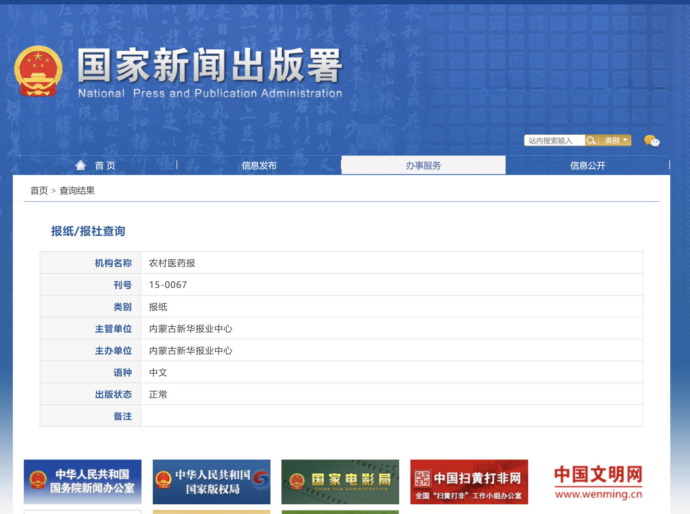 《农村医药报》是经国家新闻出版总署批准、由内蒙古新华报业中心主管主办、农村医药报编辑出版的四开八版周报,每周四出版,全彩印刷,是国内农村的医药类官方媒体。
